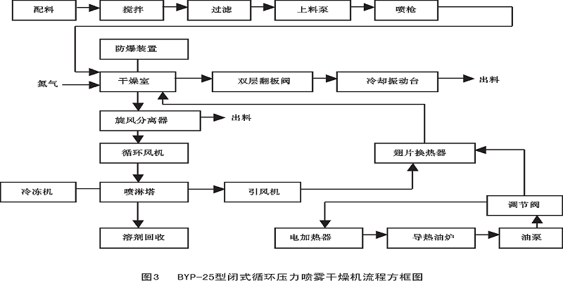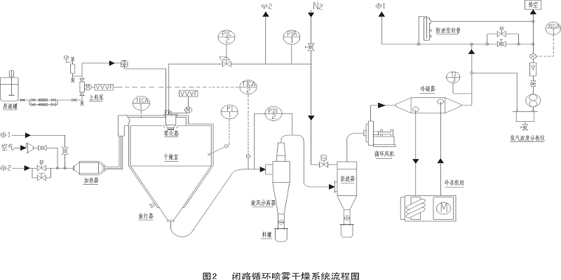 閉路循環(huán)噴霧干燥系統(tǒng)流程如圖2、圖3所示。